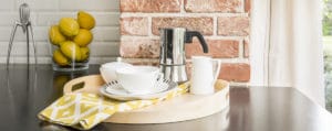 Countertop with tray and cups